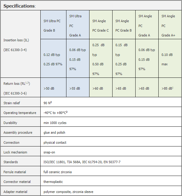 - available in MM and SM versions with ultra and angled (APC) polish