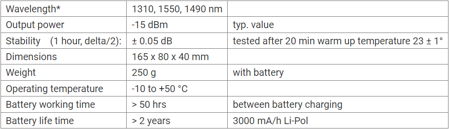 The optical light source LS-830-FTTX is designed for simultaneous testing of three wavelengths on optical lines, specifically in FTTH-PON projects. It combines the output wavelengths of 1310 nm, 1550 nm, and 1490 nm at a single output port. When used together with the PM-830-FTTX power meter, it enables simultaneous measurement and display of all three wavelengths. If needed, measurements can also be conducted at one or two wavelengths. The interchangeable connector/adapter design allows for easy replacement of optical PC or APC connectors (FC, SC, or ST) and easy cleaning of the output connector ferrule after removing the connector adapter. LC/PC and LC/APC are also available.