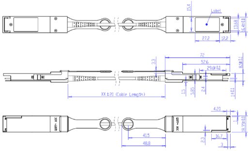 AOC ist elektrisch Hot-Plug-fähig und entspricht SFF-8431, QSFP+ MSA und RoHS. Leistungsverlust < 1,5 W (pro Kabelende).