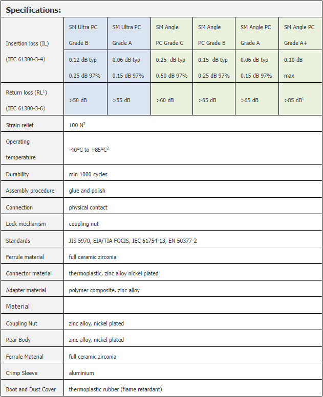 Die Patchkabel mit FC-Steckertyp werden gemäß den JIS-, IEC-, EIA/TIA- und ANSI-Spezifikationen für Steckbarkeit und optische Leistung entwickelt und hergestellt. Die FC-Stecker werden für MM- oder SM-Anwendungen mit PC- und APC-Polierverfahren angeboten.