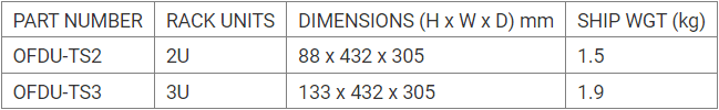 Der OFDU-TS-Schrank basiert auf universellen optischen Verteilerrahmen. Das einheitliche modulare System ermöglicht eine einfache Neukonfiguration und kann je nach Bedarf des Betreibers erweitert werden. Der OFDU-TS bietet Spleißen und Terminierung in einer praktischen Gehäuseeinheit. Der OFDU-TS terminiert bis zu 192 Fasern in einem 3U-Verteilerrahmen. Diese Einheit kann bis zu 12 Snap-In-Kopplungsfelder oder vorverdrahtete Kassetten aufnehmen. Das ausziehbare und herunterklappbare Regal ermöglicht uneingeschränkten Zugang von vorne, hinten und oben zum Spleißbereich und den Terminierungsfeldern. Es können verschiedene Arten von Spleißkassetten verwendet werden.