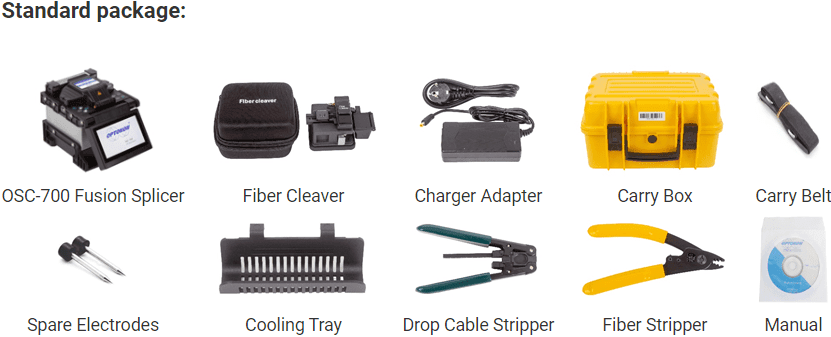 Das OPTOKON OSC-700 ist ein automatisches Fusionsspleißgerät für SM, MM, DS, NZ-DS (G655), EDF und andere Fasern. Das OSC-700 ist in der Lage, selbst unter ungünstigsten Umgebungsbedingungen qualitativ hochwertige Spleiße zu gewährleisten. Die OSC-700-Spleißgeräte eignen sich für die Ausrichtung von Kern oder Mantel. Bei einer dieser Methoden werden die beiden gespaltenen Fasern vom Fusionsspleißgerät automatisch in der X- und Y-Ebene ausgerichtet und dann miteinander verschmolzen. Der blanke Faserbereich wird entweder durch eine Ummantelung oder mit einem Spleißschutz geschützt.