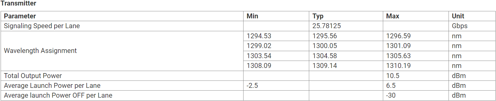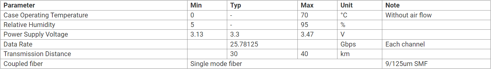 - Unterstützt Leitungsgeschwindigkeiten von 103,125 Gbit/s